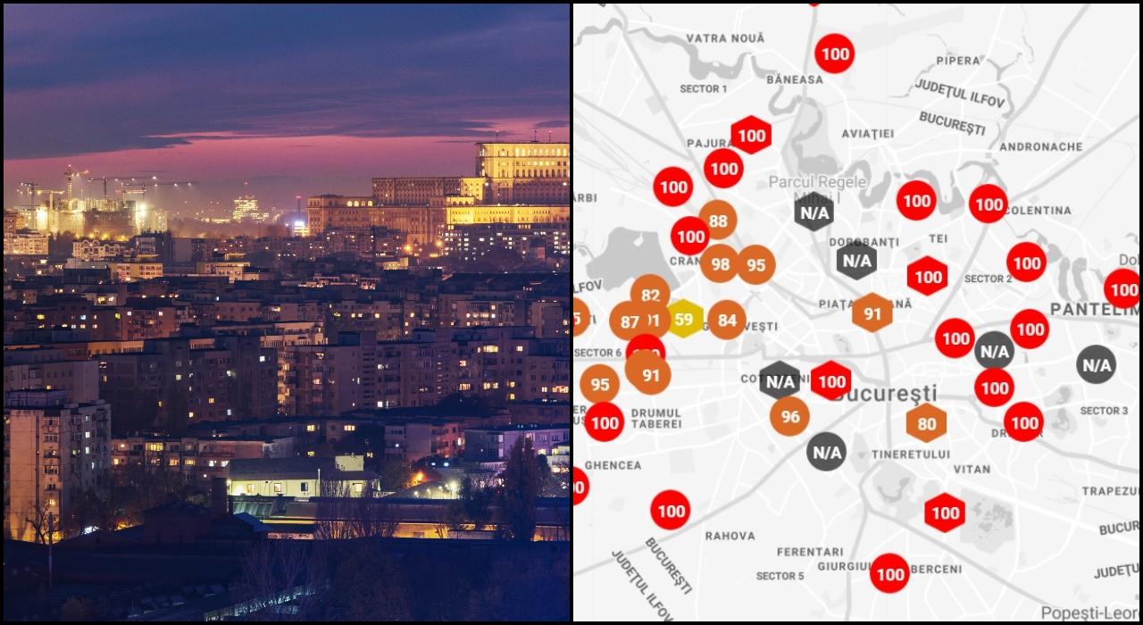 AerLive: Nivel foarte ridicat de poluare a aerului în București, cartiere întregi sunt la valori maxime