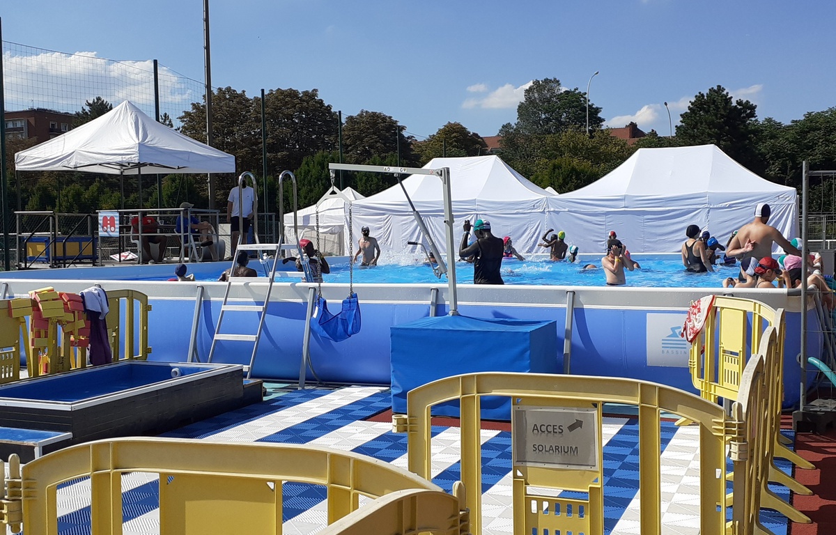 « 20 Minutes » a visité la baignade éphémère des Poissonniers dans le 18e arrondissement, le tout nouveau bassin installé par la Ville de Paris, une vraie bouffée d’air frais